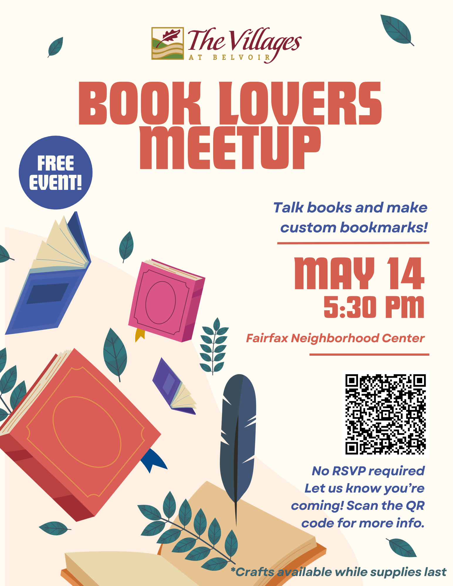 Do you love reading? Come hang out with us! Chat about your favorite reads while crafting custom bookmarks and having some snacks! Please let us know if you are coming so we can have enough craft supplies for all guests.